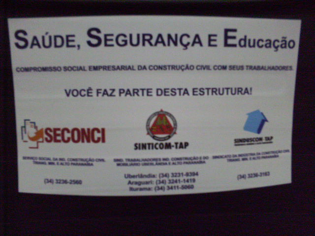 Representando o setor da construção civil, o Sinduscon-TAP – Sindicato da Indústria da Construção Civil e o Seconci-TAP – Serviço Social da Ind. da Construção Civil do Triângulo Mineiro e Alto Paranaíba marcaram presença através do Vice-Presidente de Tecnologia do Sinduscon-TAP e Presidente do Seconci-TAP - Sr. Rubens Debs Procópio, assim como da Gerente Comercial Fernanda Abrahão e da Assessora de Comunicação Darci Martins do Seconci-TAP.