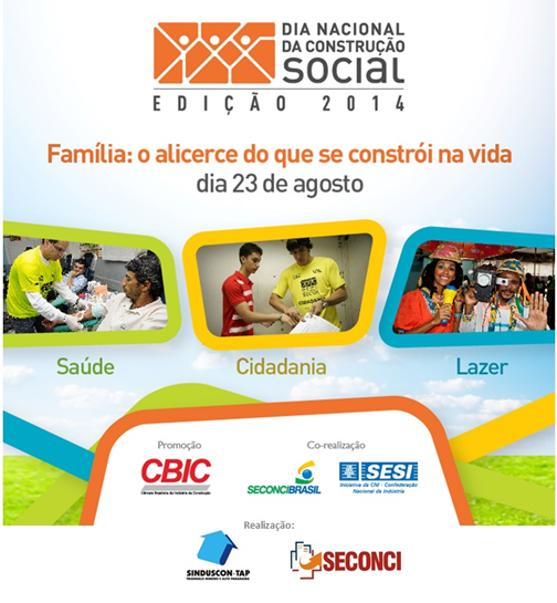 O Seconci-TAPe o Sinduscon-TAP realizaram o “DIA NACIONAL DA CONSTRUÇÃO SOCIAL”, no dia 23 de agosto de 2014 (sábado), das 09 às 16 horas, no SESI Gravatás, em Uberlândia, Minas Gerais.